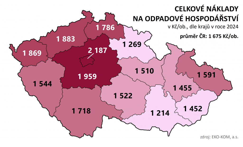 V roce 2024 byla výše nákladů na sběr a svoz papíru 7 139 Kč za jednu tunu sebraného materiálu, náklady na plast činily 10 891 Kč/t a náklady na sklo byly 2 357 Kč/t.