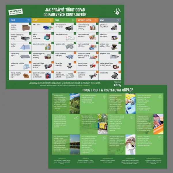 Leták informující o tom, co patří a nepatří do jednotlivých nádob na tříděný odpad.